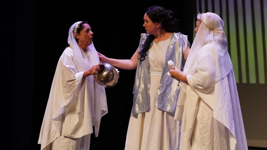 Petit reportage photographique prise lors de la répétition de la pièce « Lisistrata », comédie grecque antique d’Aristophane écrite en 411 av. J.-C. Représentation donnée par Teatrolingua au centre culturel néimënster le 2 et 3 octobre 2025.
